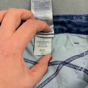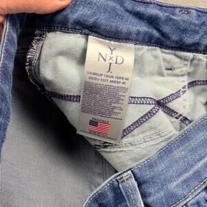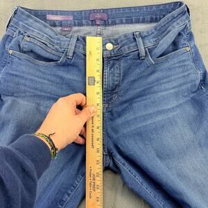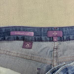 NYDJ Farrah Flare Jeans Womens 12 Blue Denim Stretch Lift Tuck Distressed Rock