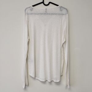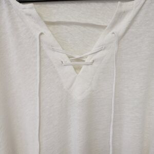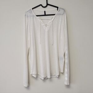 NYDJ Front Lace Linen Blend Long Sleeve Top White L