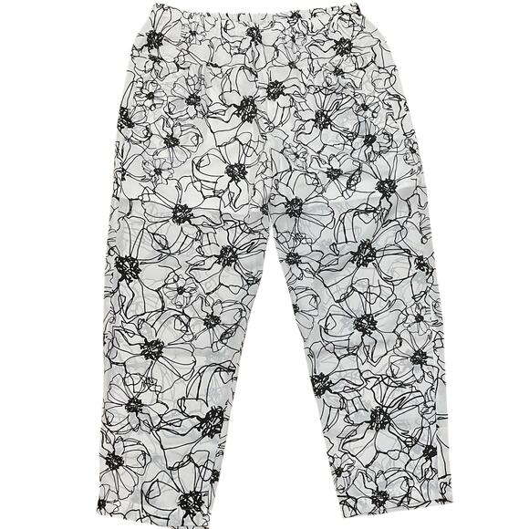 NYDJ Ines Slim Pant Women's M White w/ Black Floral All Over Pattern Pull On NWT