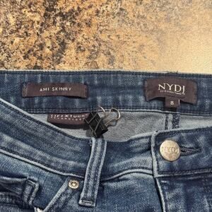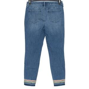 NYDJ Jeans Ami Skinny Embroidered Raw Hem Boho Minimalist Retro Lift Tuck Blue 8