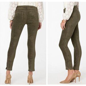 NYDJ Jeans Size 16 Alina Skinny Faux Suede Olive Green Ankle Slit Stretch Pants