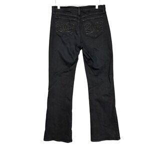 NYDJ Jeans Womens 12 Black Denim Bootcut Lift Tuck Tech High Rise Slimming Panel. Good pre-owned condition. Mild wash wear, several missing beads from back pockets. See pictures for details. See photos for measurements. Ships quickly from smoke-free home.