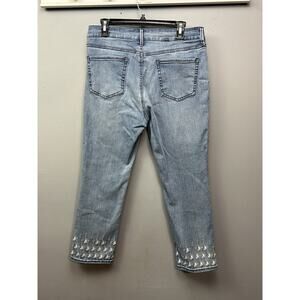 NYDJ Jeans Womens 14 Petite Blue Denim Sheri Slim Cropped Lift Tuck Embroidered