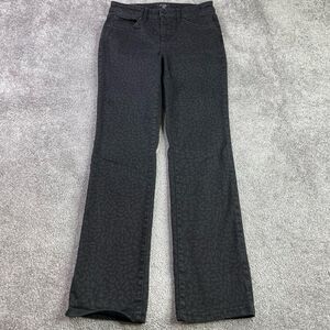 NYDJ Jeans Women's 4 Black Straight High Rise Cheetah Print Marilyn Lift Tuck