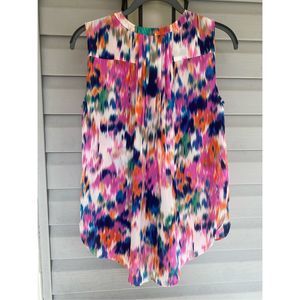 NYDJ 'Lana' Ikat Print Watercolor Print Sleeveless Blouse Top, Sz Small, MP $89
