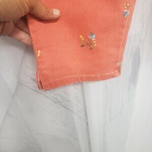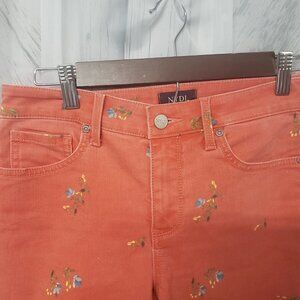 NYDJ Lift Tuck Orange Denim Blue Floral Capri Jeans Boho Festival Summer 4