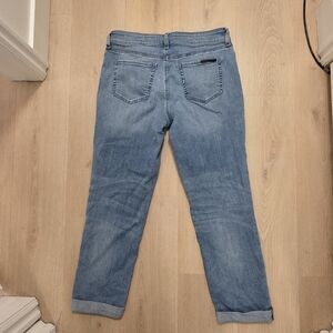 NYDJ Light Wash Stretch Boyfriend Embroidered Mid-Rise Cropped Jeans Size 6