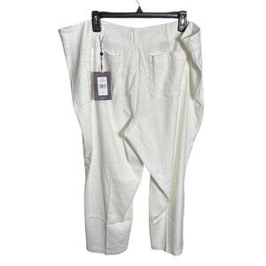 NYDJ Marilyn Ankle Trousers Linen Blend White Size 16W Lift Tuck Technology