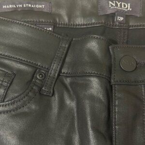 NYDJ Marilyn Straight Black Coated Jeans Lift Tuck Technology 12P stretch zip