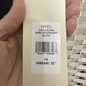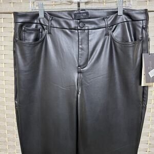 NYDJ Marilyn Straight Faux Leather Jeans Women 14 Black Sculpt Her Lift Tuck NEW