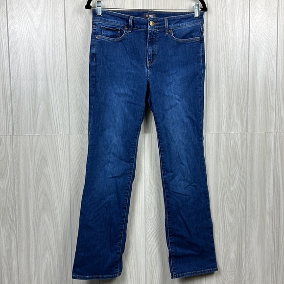 NYDJ Marilyn Straight Jeans Size 10 Petite Dark Wash Denim Mid Rise Stretch