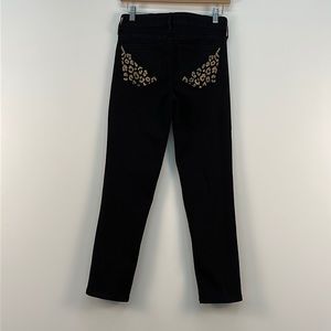 NYDJ Marilyn Straight Jeans With Catwalk Pocket Rhinestone Embroidery 2 Petite