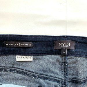 NYDJ Marilyn Straight Jeans Womens 12 Stretch Lift Tuck Technology Dark Blue NEW