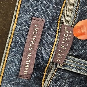 The easy, figure-elongating construction of the NYDJ Marilyn Straight Jeans pairs well with everything, thanks to a flattering waist and a versatile straight-leg fit. Lift Tuck® Technology uses a proprietary slimming panel with a patented criss-cross design to shape and support your curves for an always-sleek silhouette. Finished with classic five-pocket styling, zip fly and button closure.