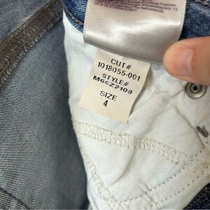 Features 5-pocket styling, button/zip fly, cuffed hem.