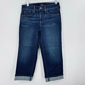 NYDJ Marilyn Straight Leg Crop Cuff Jeans Dark Wash Stretch Womens Size 0