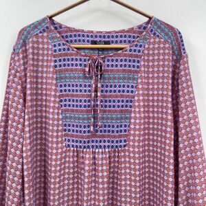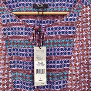 NYDJ Multicolor Floral Tie Neck Long Sleeve Peasant Tunic Blouse Size 2X NWT