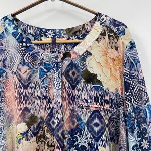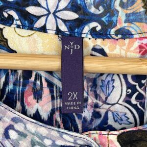 NYDJ Multicolor Pintuck Back Half Button-Down 3/4 Sleeve Floral Blouse Size 2X