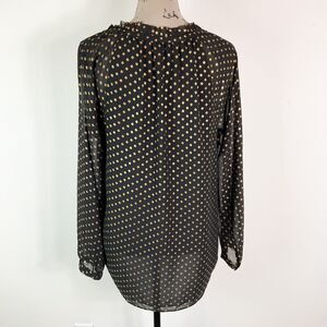 NYDJ NWOT Gold Foil Polka Dot Pin-Tuck Long Sleeve Blouse Black Size S