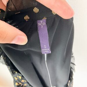 NYDJ NWOT Black Gold Foil Squared Polka Dot Pin-Tuck Blouse Size S