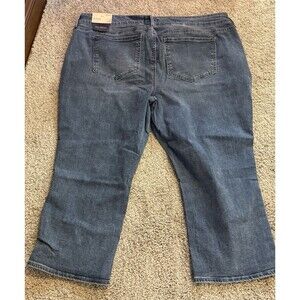 The NYDJ Not Your Daughters Jeans in Woman's Plus Petite size 20WP offer a classic and modern straight fit, featuring a medium wash denim fabric that is comfortable and stretchy for all-day wear. The solid blue color and 5-pocket brand new