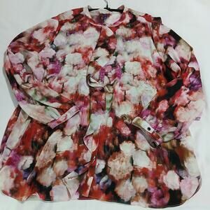 XL size with an abstract floral print. Long sleeves, button front and a comfortable fit.