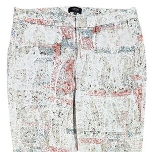 Good used condition, with no stains or tears. Unique and artsy paisley cream trousers. Cropped. Has lift tuck tummy control technology, side pockets and a zip fly/hook closure.