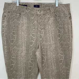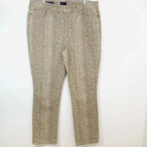 NYDJ Pants Sheri Slim Size 16 Beige Snake Print Pockets Stretch Lift Tuck