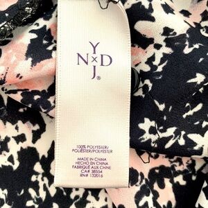 NYDJ Pintuck Black/WhitePink Abstract Floral Blouse Size Petite Medium. NYDJ's Pintuck Blouse boasts a billowy three-quarter-sleeved silhouette that's perfect when paired with any slimming denim styles. Pleating at the back yoke creates a sophisticated yet easy drape. Split round neckline.