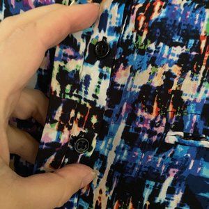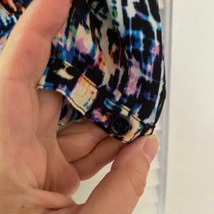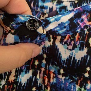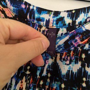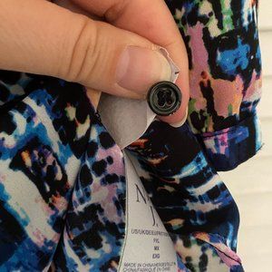 NYDJ Pintuck Blouse Women's Petite XL Blue Split Neck Pullover PXL