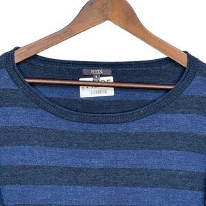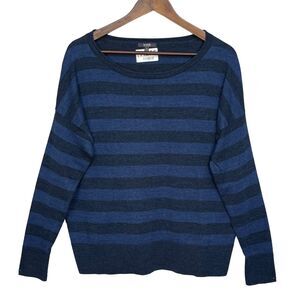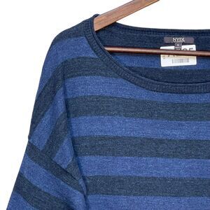 NYDJ Pullover Sweater Women Size S Blue Striped Long Sleeve Side Slit Stretch