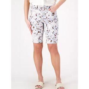NYDJ SIZE 4 Stretchy Knee Length Floral Print Lift & Tuck Briella Denim Shorts