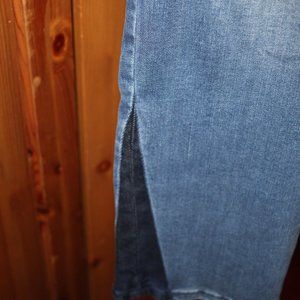 Machine wash cold and line dry." I love the feauture of the dark fold at the ankle on both legs. 42 in. waist, 27 in. inseam and 13.5 inch rise. Pre-loved from a smoke-free, pet-free home.