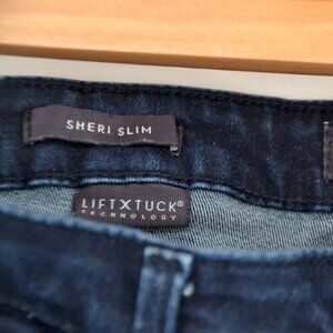 NYDJ Sheri Slim Lift Tuck Straight Jeans High Rise Dark Wash Blue 10P Petite