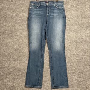 NYDJ Womens Size 16 Slim Bootcut Ankle Jeans Blue Washed Cotton Blend Mid Rise Pockets Stretch