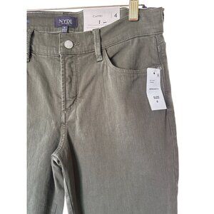 These stylish NYDJ capri jeans feature a wide cuff and an elegant embroidered design in a refreshing green color. Perfect for casual outings, they are new with tags and crafted for comfort and style.