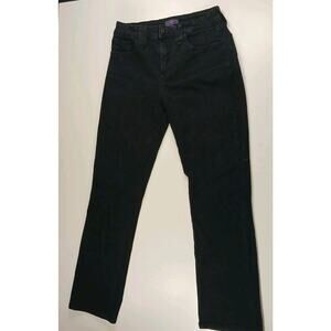 NYDJ Straight Jeans Size 6P Black Denim Stretch Lift Tuck Tech High Rise EUC