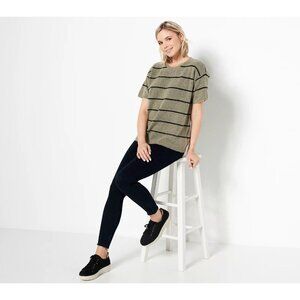 Slip into the cozy comfort of this classic striped sweater from NYDJ, designed with a versatile crew neck and short sleeves perfect for layering or wearing on its own. The timeless striped pattern in a chic gray hue makes this piece a go-to for any casual, business, or travel occasion. Crafted with a blend of acrylic, polyester, and a hint of spandex, this knit pullover offers a snug yet comfortable fit in a plus size 0X, ensuring both style and ease.