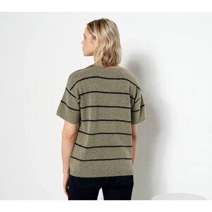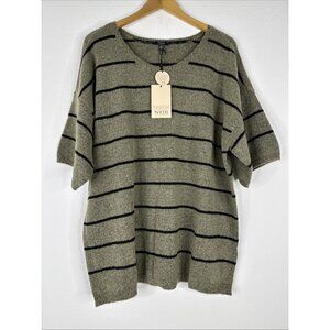 NYDJ Striped Short Sleeve Crew Neck Sweater Womens Plus Size 0X Gray NEW