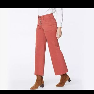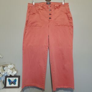 NYDJ Teresa Auburn Pants Size 14 Wide Leg Ankle Cut Raw Hem Button Fly Stretch