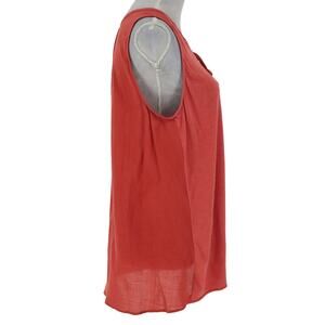 NYDJ Top Womens Medium Red Linen Blend Blouse Lace Up Sleeveless Pullover