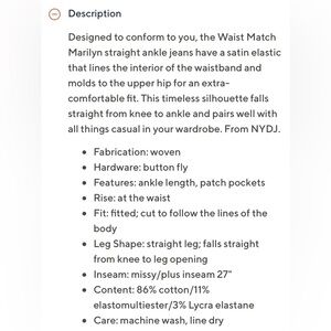 An ankle-length is the perfect complement to the straight-leg silhouette in these classic jeans by NYDJ.