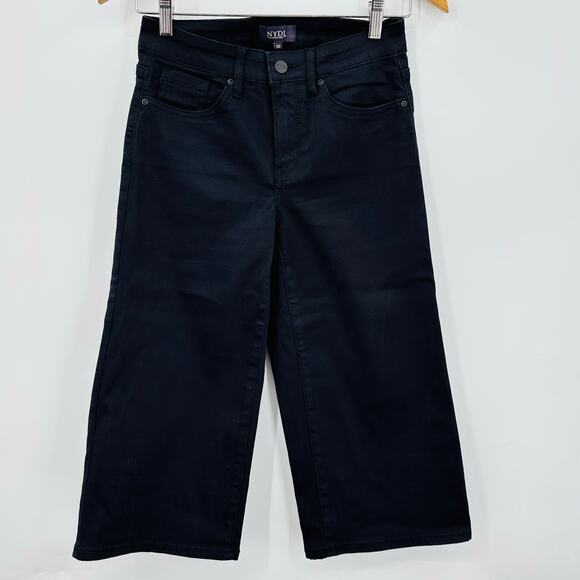 NYDJ Wide Leg Pedal Pusher Jeans Womens SIZE 00 BLACK Stretch NWOT