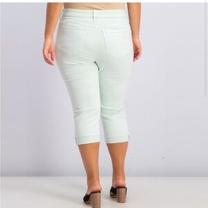 Cropped and cuffed light green Capri jeans, stretch fabric, very comfortable and great fit with Lift Tuck technology