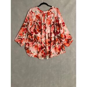 NYDJ Women's 1X Pin Tuck Floral Blouse in Utopia NEW