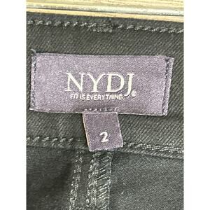 NYDJ Marilyn Straight Ankle Jeans in women’s size 2. Black denim with roll-cuff hem for a modern casual look. Features a straight-leg cut, ankle length, and zip fly with button closure. Designed with NYDJ’s signature slimming fit for a flattering silhouette.