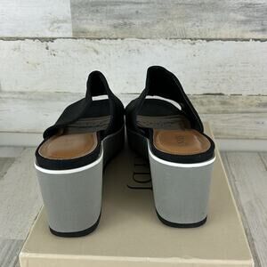 Step into effortless style with the NYDJ Rysa wedge sandals. Designed in black canvas with gray fabric accents, these women’s size 8.5 slip-on wedges offer comfort and a little extra height with a platform wedge sole. Perfect for casual outings, vacations, or warm-weather wear.