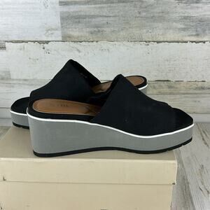NYDJ Womens 8.5 Rysa Black Canvas Gray Fabric Platform Wedge Sandals Slip-On new