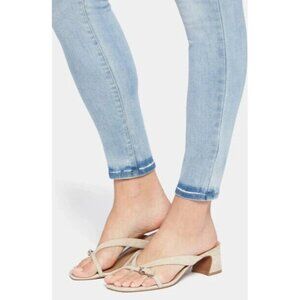 The NYDJ Women's Ami Size 16 New Wave Skinny High Waist Stretch Jeans are a stylish wardrobe staple for women. Made from a comfortable cotton blend denim fabric with a light wash, these skinny jeans feature a high-rise waist and a 5-pocket design for a classic look. The jeans have a regular fit and a 29-inch inseam, making them suitable for various seasons like summer, fall, and spring. Perfect for everyday wear, these NYDJ jeans offer both style and comfort with their stretch material and belt loop.