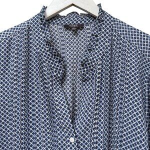 NYDJ Womens Blouse Plus Size 2X Blue Print Tunic Top Ruffle Long Sleeve NWOT